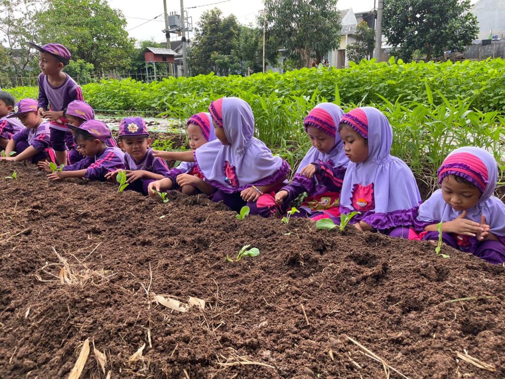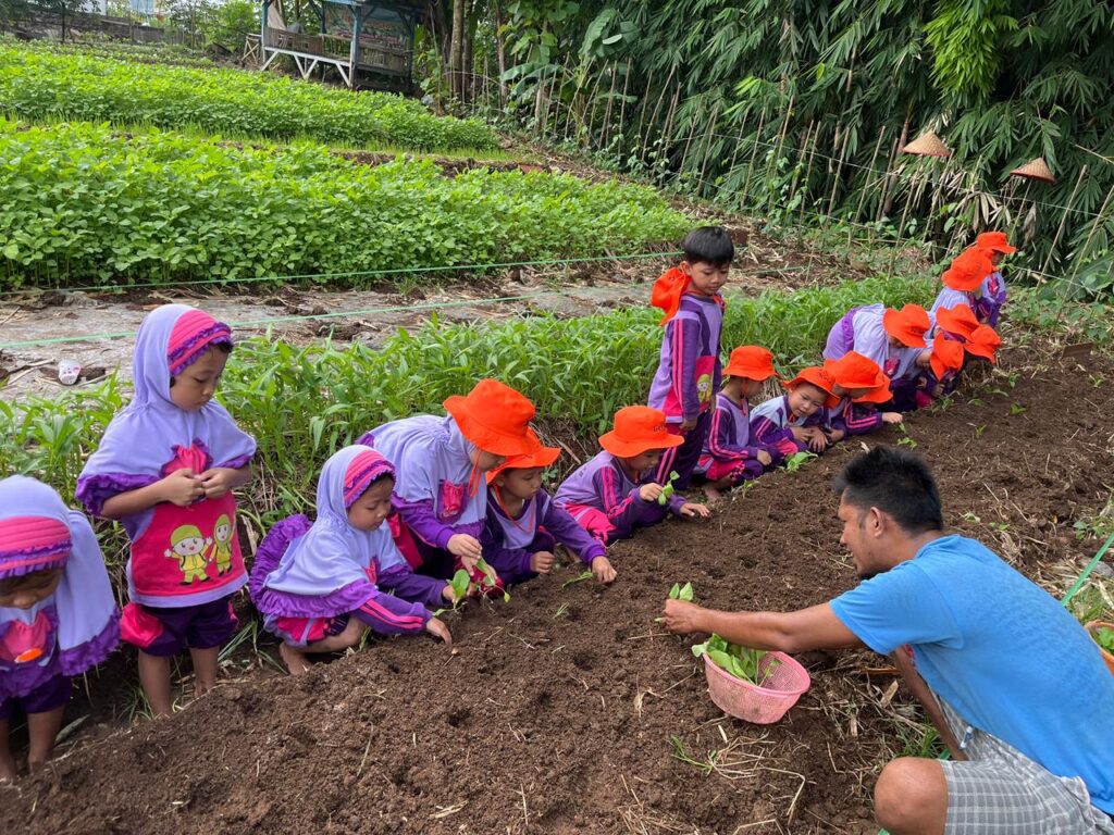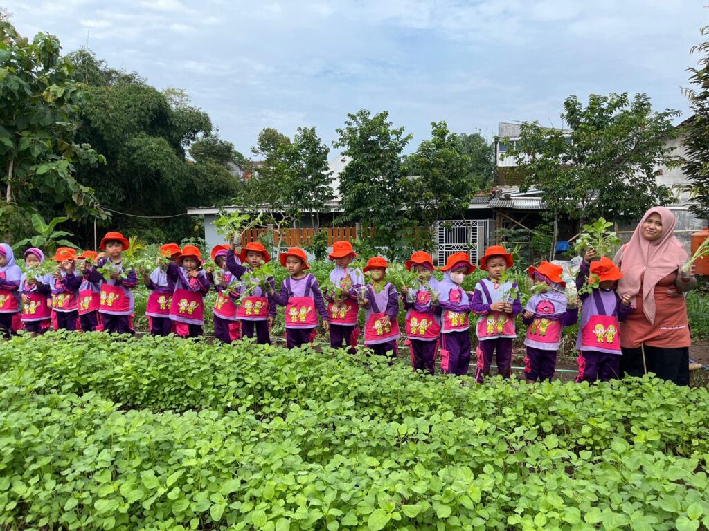 Kegiatan Menanam dan Memanen Sayur di Sawah Pokmas BMP: Belajar Langsung dari Alam Bersama Kelompok RA A