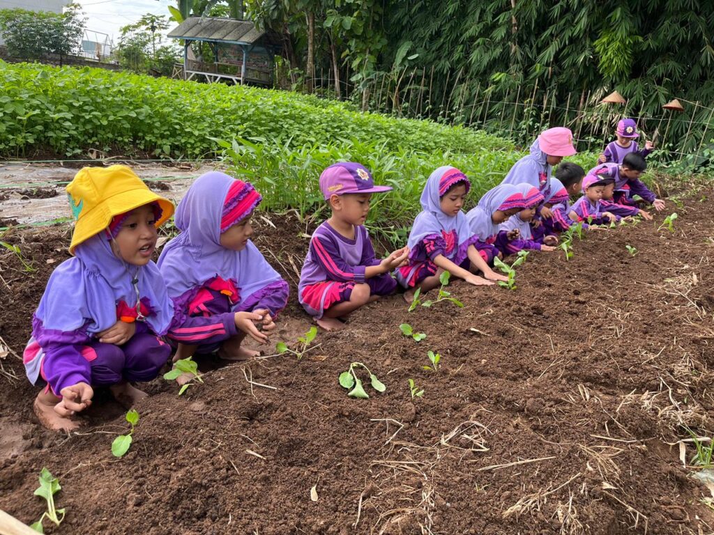 Sesampainya di sawah, anak-anak disambut dengan pemandangan alam yang asri serta para petani yang siap berbagi ilmu. Kegiatan diawali dengan pemberian contoh langsung oleh petani mengenai cara menanam sayur bayam yang benar, mulai dari cara memegang bibit, menancapkan ke tanah, hingga merapikan tanah di sekitarnya. Anak-anak memperhatikan dengan seksama dan penuh rasa ingin tahu.