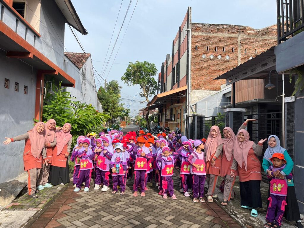 Kegiatan ini diikuti oleh seluruh peserta didik kelompok RA A yang terdiri dari 6 kelas, yaitu kelompok Apel, Manggis, Jeruk, Delima, Duku, dan Leci. Lokasi sawah yang tidak terlalu jauh dari sekolah memungkinkan anak-anak untuk berjalan kaki bersama menuju lokasi kegiatan. Sepanjang perjalanan, anak-anak tampak sangat antusias. Mereka berjalan berbaris rapi sesuai kelompoknya, sambil bernyanyi dengan riang dan penuh semangat, menciptakan suasana kebersamaan yang hangat dan menyenangkan.